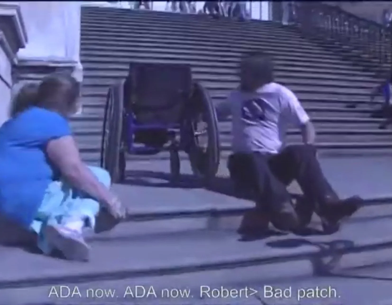In their pockets, these protesters carried rolled up copies of the Declaration of Independence. Upon completing the summit and reaching the top of the steps, protestors entered the Capitol building and delivered the document to members of congress, with a pressing plea to finalize the ADA and sign it into law.